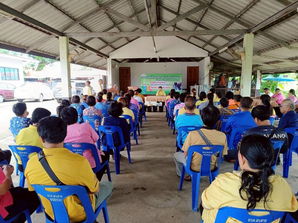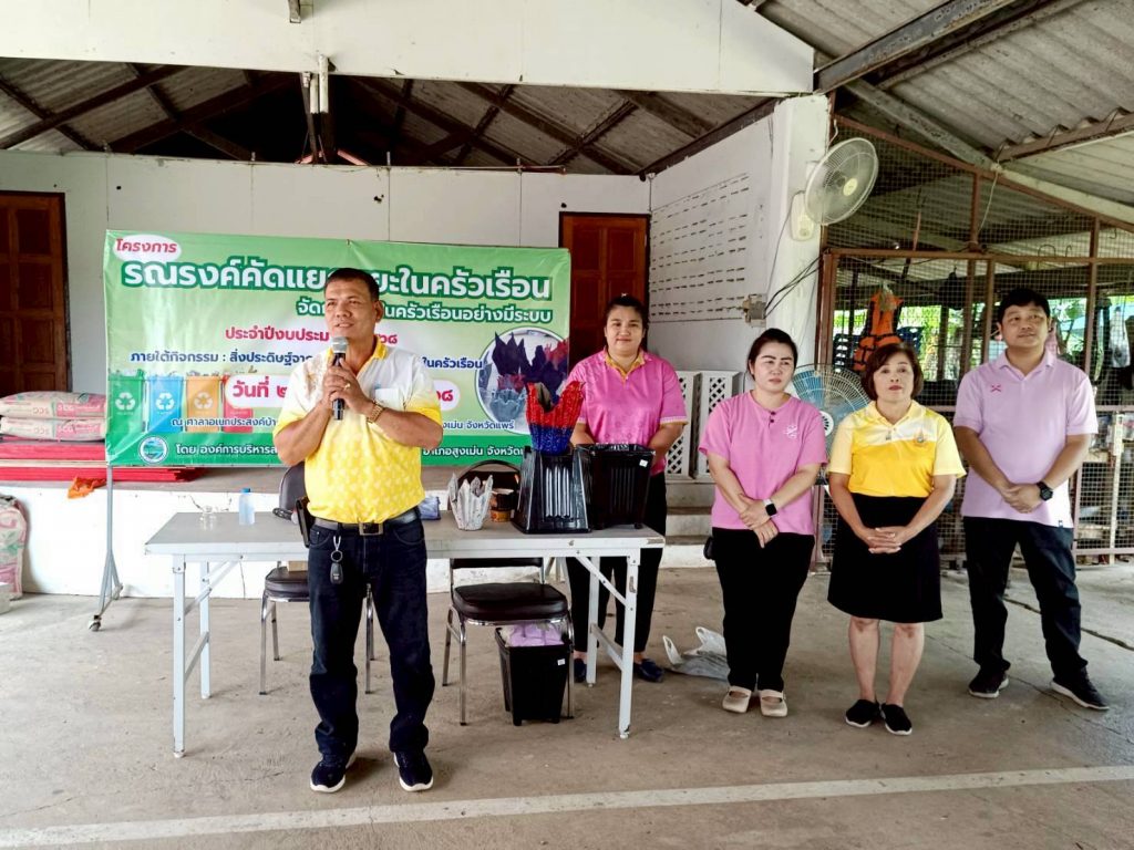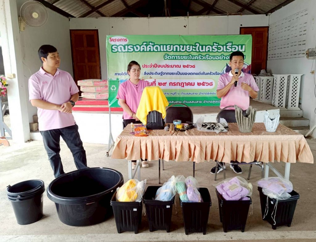 วันที่ 29 กรกฎาคม 2568 สกร.ระดับอำเภอสูงเม่น โดยนางสาวอรุณี พันธุ์พาณิชย์ ผู้อำนวยการ สกร.ระดับอำเภอสูงเม่น มอบหมายให้นายวิทยา ปินตา ครูศูนย์การเรียนรู้ นางสาวกัญญารัตน์ สายแสง ครูศูนย์การเรียนรู้ นายสุรเชษฐ์ วังกระแส ครูศูนย์การเรียนรู้ และนางสาวจุฑามาส จำรัส ครูศูนย์การเรียนรู้ ร่วมเป็นวิทยากร ตามโครงการรณรงค์คัดแยกขยะในครัวเรือน ประจำปีงบประมาณ 2568 กิจกรรม : สิ่งประดิษฐ์จากขยะเป็นของตกแต่งในครัวเรือน โดยให้ความรู้แก่ประชาชนตำบลสบสาย จำนวน 50 คน ณ องค์การบริหารส่วนตำบลสบสาย หมู่ที่ 1 ตำบลสบสาย อำเภอสูงเม่น จังหวัดแพร่