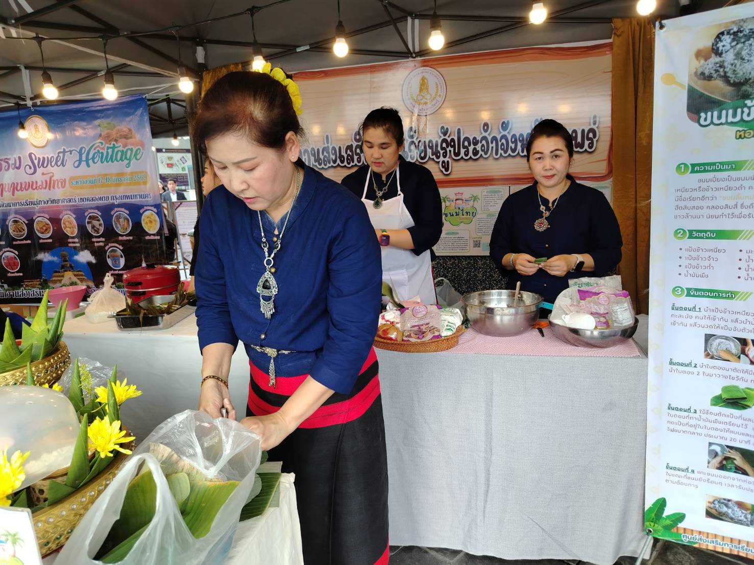 วันที่ 17-18 มกราคม 2569 สกร.ระดับุอำเภอสูงเม่น นางสาวศิริลักษณ์ มั่นเหมาะ ครู รักษาการในตำแหน่ง ผู้อำนวยการ สกร.ระดับอำเภอสูงเม่น นางนงลักษณ์ บุญทร นางสาวจุฑามาศ จำรัส และนางสาวกัญญารัตน์ สายแสง ครูศูนย์การเรียนรู้ ร่วมงาน Sweet Heritage ขนมไทยโบราณ Soft Power ท้องถิ่น จะคงอยู่ By สกร. โดย สกร.ระดับุอำเภอสูงเม่น จัดกิจกรรมสาธิตการทำขนมไทยโบราณ ” ขนมข้าวเปี่ยง ” ณ ศูนย์ส่งเสริมและพัฒนาการเรียนรู้ทางวิทยาศาสตร์ กรุงเทพมหานคร