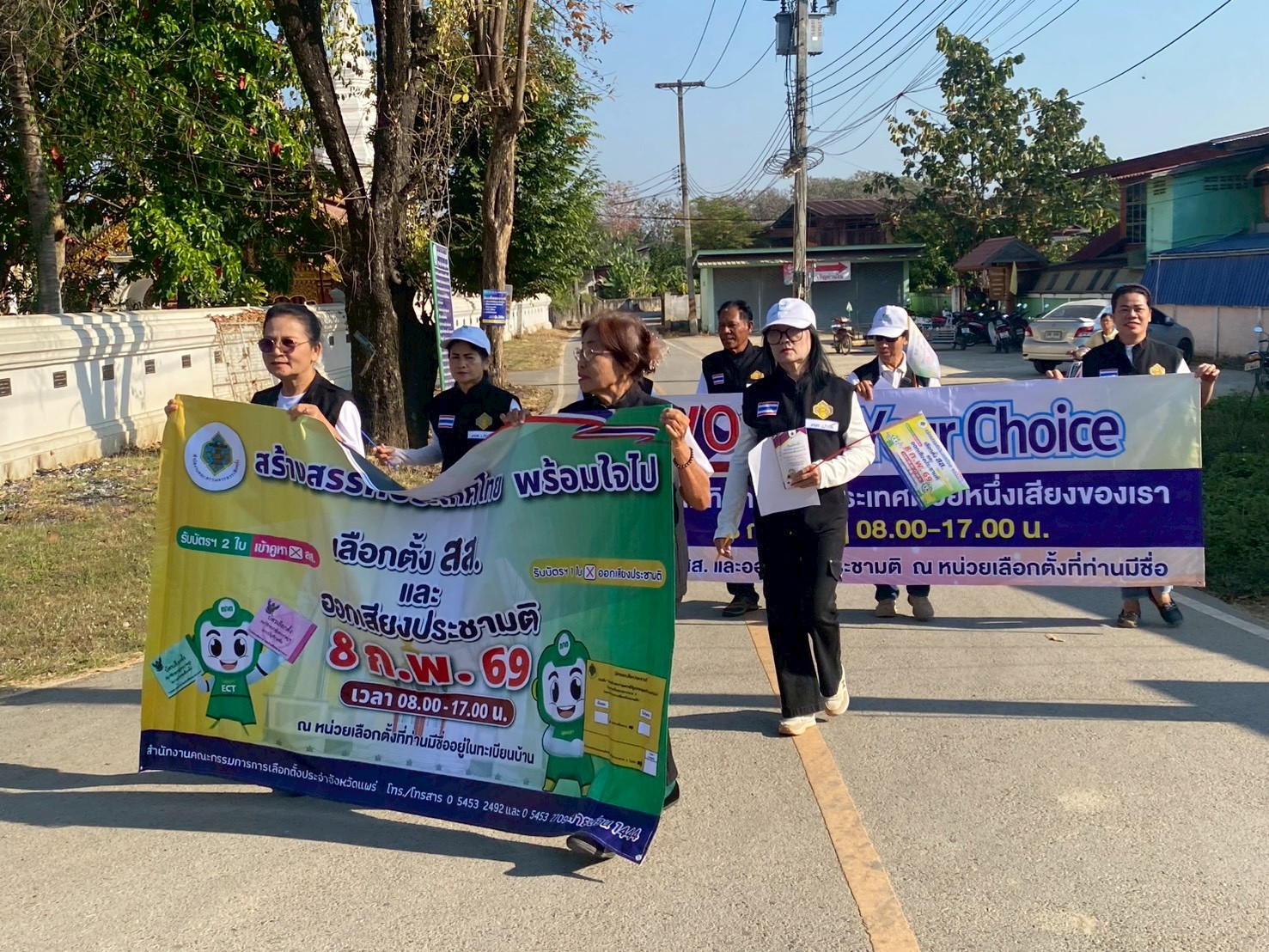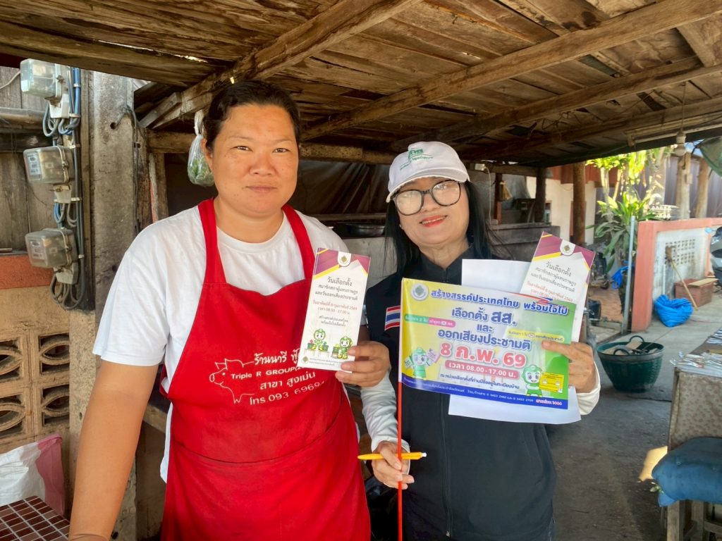 วันที่ 6 กุมภาพันธ์ 2569 สกร.ระดับอำเภอสูงเม่น นำโดย นางสาวศิริลักษณ์ มั่นเหมาะ ครู รักษาการในตำแหน่ง ผู้อำนวยการศูนย์ส่งเสริมการเรียนรู้ระดับอำเภอสูงเม่น มอบหมายให้นางสาวมุกดา เหมืองจา ครูศูนย์การเรียนรู้ และนางสาวพรพรรณ บ่อคำ ครูศูนย์การเรียนรู้ ร่วมกับคณะกรรมการ ศส.ปชต.น้ำชำ ร่วมกิจกรรมเดินรณรงค์ แจกแผ่นพับเคาะประตูบ้าน เชิญชวนประชาชนให้ออกมาใช้สิทธิเลือกตั้ง ลงประชามติ และฝึกการกากบาทบัตรเลือกตั้ง ณ หมู่ที่ 6 บ้านร่องแดง ตำบลน้ำชำ และพื้นที่ตำบลน้ำชำ อำเภอสูงเม่น จังหวัดแพร่