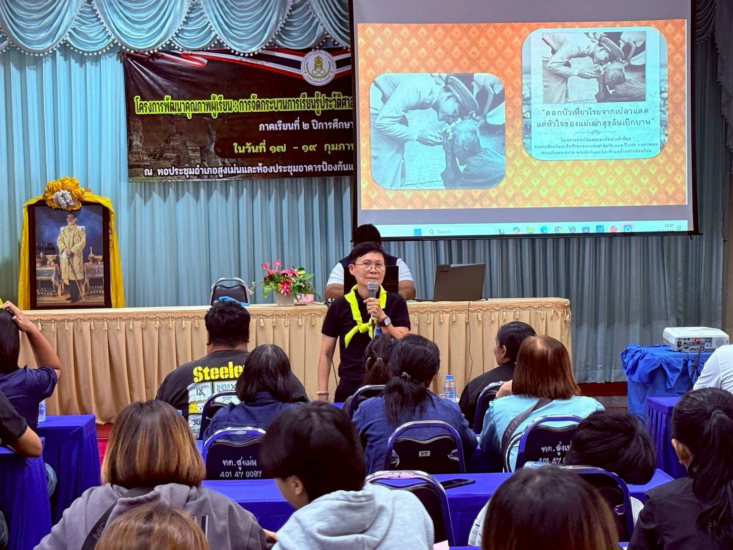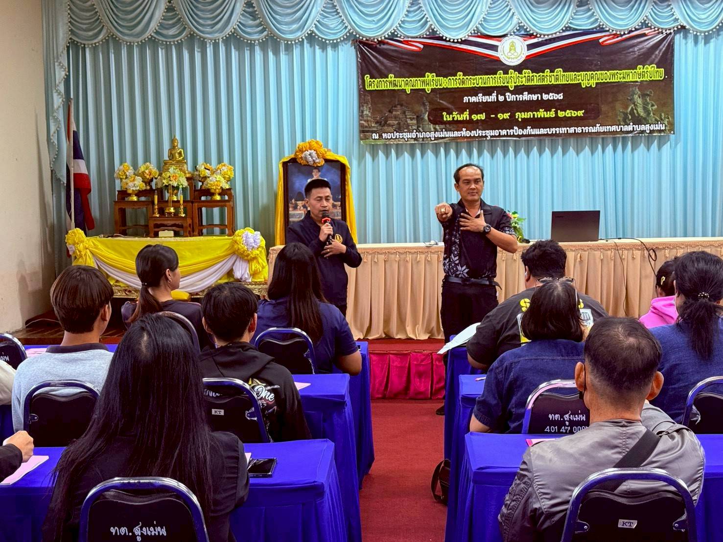 วันที่ 17-19 กุมภาพันธ์ 2569 สกร.ระดับอำเภอสูงเม่น นำโดย นางสาวศิริลักษณ์ มั่นเหมาะ ครู รักษาการในตำแหน่ง ผู้อำนวยการศูนย์ส่งเสริมการเรียนรู้ระดับอำเภอสูงเม่น และคณะครู สกร.ระดับอำเภอสูงเม่น ดำเนินการจัดกิจกรรมโครงการพัฒนาคุณภาพผู้เรียน : การจัดกระบวนการเรียนรู้ประวัติศาสตร์ชาติไทย และบุญคุณของพระมหากษัตริย์ไทย ณ หอประชุมอำเภอสูงเม่น และห้องประชุมอาคารป้องกัน และบรรเทาสาธารณภัย เทศบาลตำบลสูงเม่น