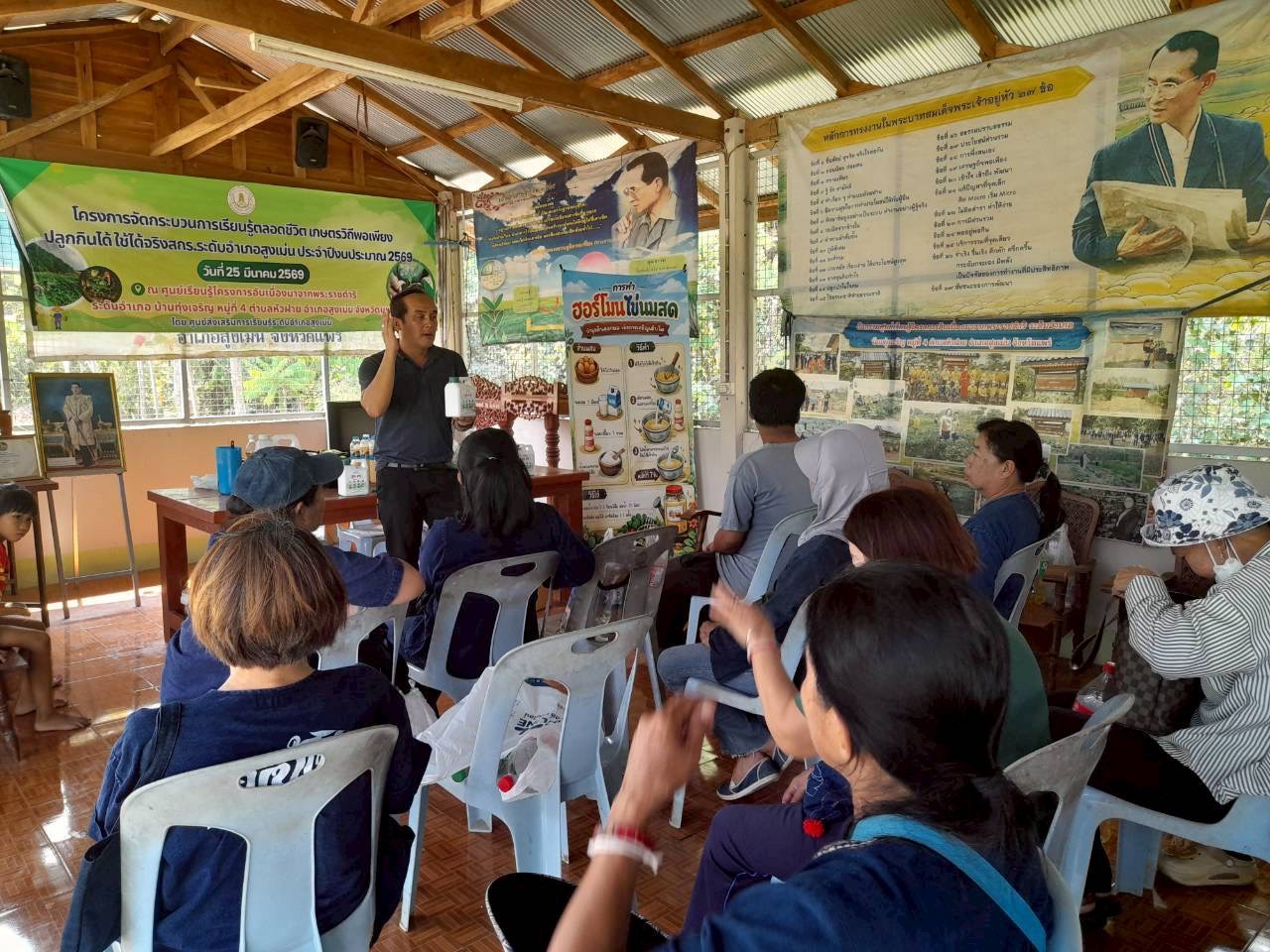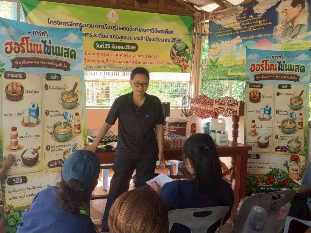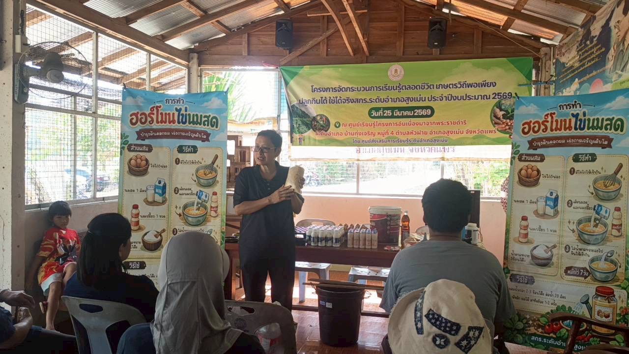 วันที่ 25 มีนาคม 2569 สกร.ระดับอำเภอสูงเม่น โดย นางสาวศิริลักษณ์ มั่นเหมาะ ครู รักษาการในตำแหน่ง ผู้อำนวยการศูนย์ส่งเสริมการเรียนรู้ระดับอำเภอสูงเม่น มอบหมายให้ครูโซนอิงน่าน 1 ศกร.ระดับตำบลหัวฝาย ศกร.ระดับตำบลบ้านกาศ ศกร.ระดับตำบลบ้านกวาง ดำเนินการจัดโครงการจัดกระบวนการเรียนรู้ตลอดชีวิต เกษตรวิถีพอเพียง ปลูกกินได้ ใช้ได้จริง สกร.ระดับอำเภอสูงเม่น ประจำปีงบประมาณ 2569 ในวัน พุธ ที่ 25 มีนาคม 2569 ณ โครงการอันเนื่องมาจากพระราชดำริ ระดับอำเภอบ้านทุ่งเจริญ หมู่ที่ 4 ตำบลหัวฝาย อำเภอสูงเม่น จังหวัดแพร่ ประกอบไปด้วยฐานการเรียนรู้เรื่องการทำฮอร์โมนนมสด,การทำจุลินทรีย์สังเคราะห์แสง,การปรุงดิน,การเพาะกล้าผัก โดยวิทยากร ครูศูนย์การเรียนรู้