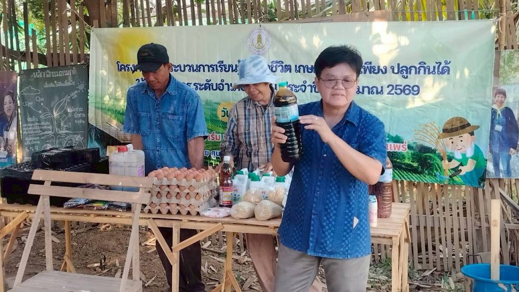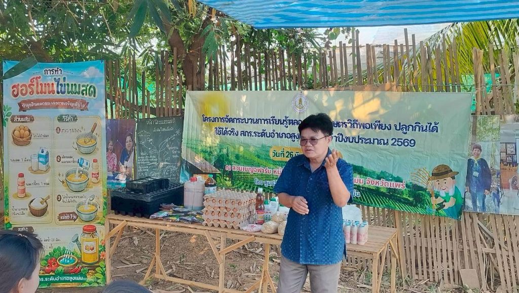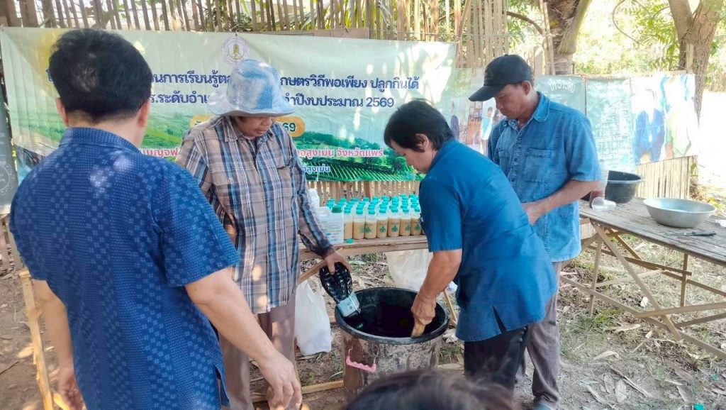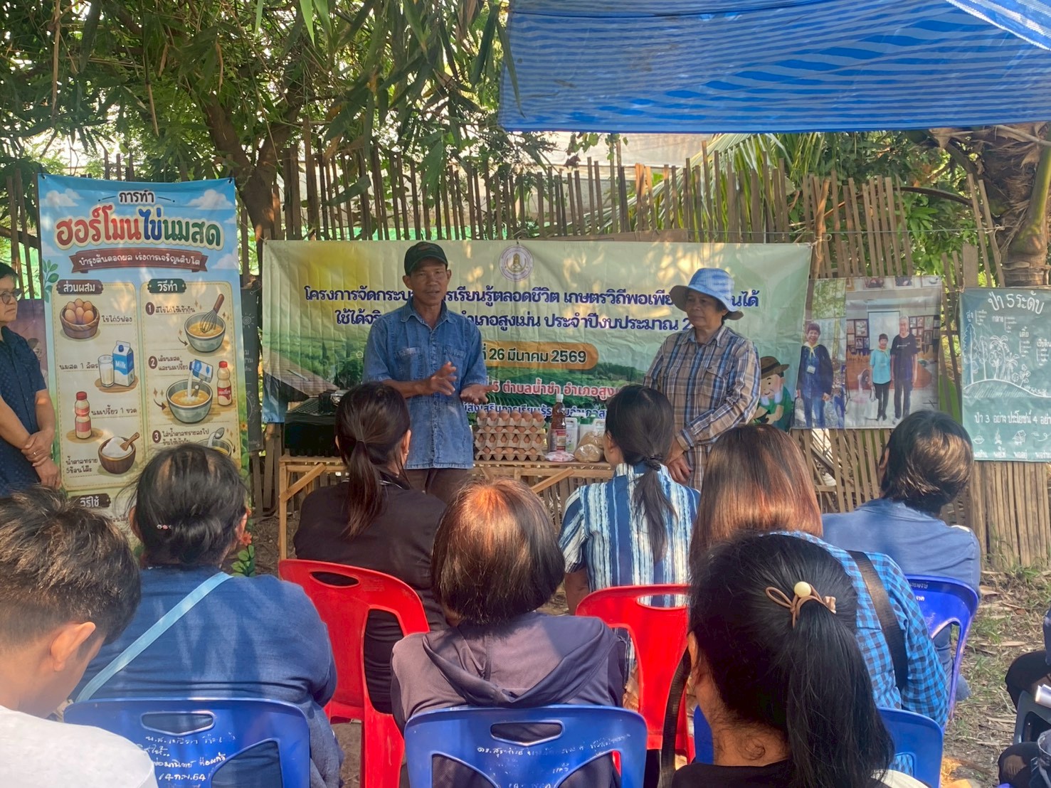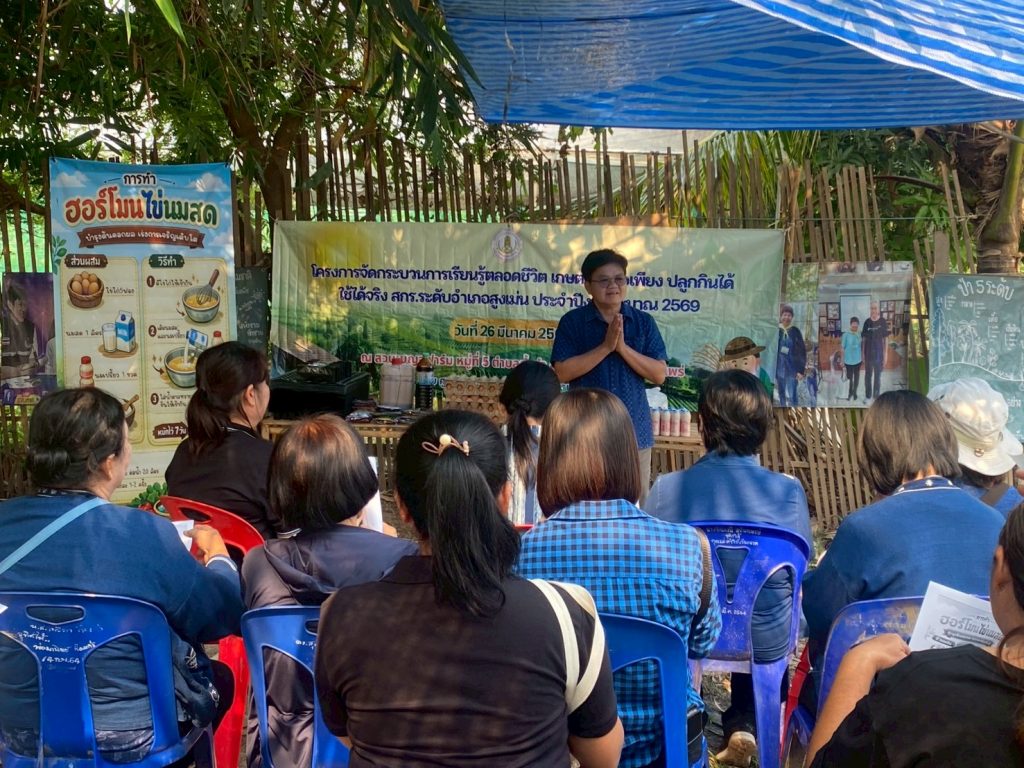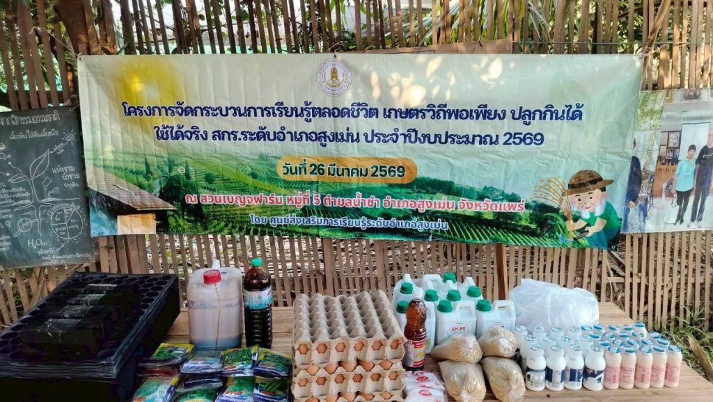 วันที่ 26 มีนาคม 2569 สกร.ระดับอำเภอสูงเม่น นำโดย นางสาวศิริลักษณ์ มั่นเหมาะ ครู รักษาการในตำแหน่งผู้อำนวยการ สกร.ระดับอำเภอสูงเม่น มอบหมายให้ ครูศูนย์การเรียนรู้ ประกอบด้วย นางสาวมุกดา เหมืองจา นางสาวพรพรรณ บ่อคำ นางสาวธนิสา ปราบปราม และนางสาวเมทินี ฉิมภารส นำตัวแทนประชาชนตำบลน้ำชำ ตำบลบ้านปง และตำบลพระหลวง เข้าร่วมโครงการจัดกระบวนการเรียนรู้ตลอดชีวิต เกษตรวิถีพอเพียง ปลูกกินได้ ใช้ได้จริง สกร.ระดับอำเภอสูงเม่น ประจำปีงบประมาณ 2569 กิจกรรมประกอบด้วย 1. การทำฮอร์โมนไข่ 2. การทำจุลินทรีย์สังเคราะห์แสง 3. การปลูกผักปลอดสารพิษตามฤดูกาล 4.การขยาย EM ณ สวนเบญจฟาร์ม หมู่ที่ 12 ตำบลน้ำชำ อำเภอสูงเม่น จังหวัดแพร่